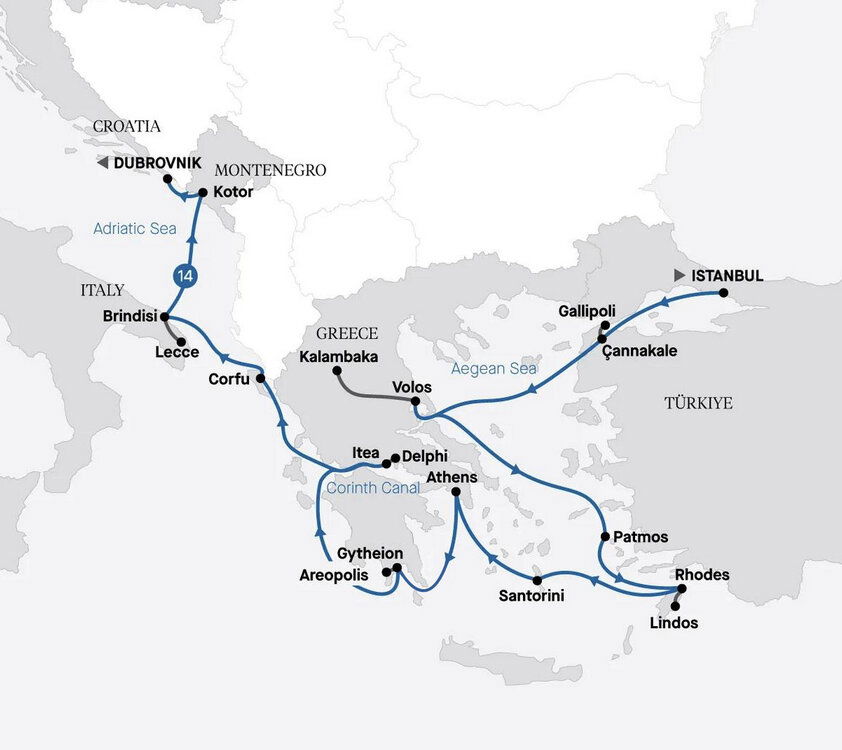 Arrive in the timeless city of Athens, the ancient capital that's brimming with history and culture. Embark on a captivating tour of its most iconic landmarks, including the awe-inspiring Acropolis, the majestic Parthenon, and the charming, historic neighbourhood of Plaka. As you stroll through its narrow, cobblestone streets, you'll be transported back in time, walking in the footsteps of the Ancient Greeks and immersing yourself in the rich heritage of this legendary city (B/L/D)