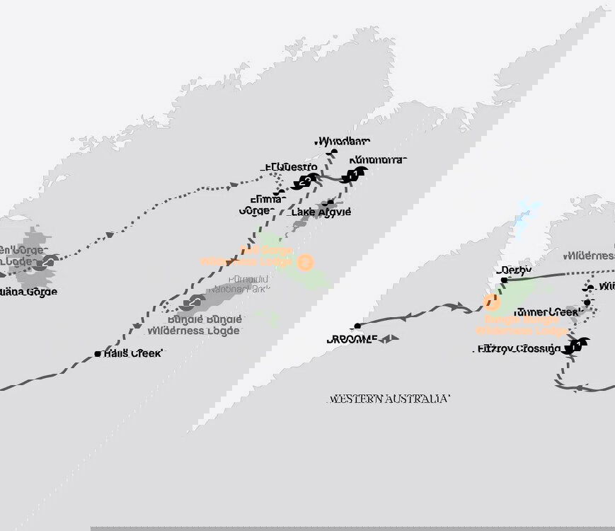 Travel towards Fitzroy Crossing today and enjoy your Signature Experience. Stay: Fitzroy Crossing, Fitzroy River Lodge (B/L/D)