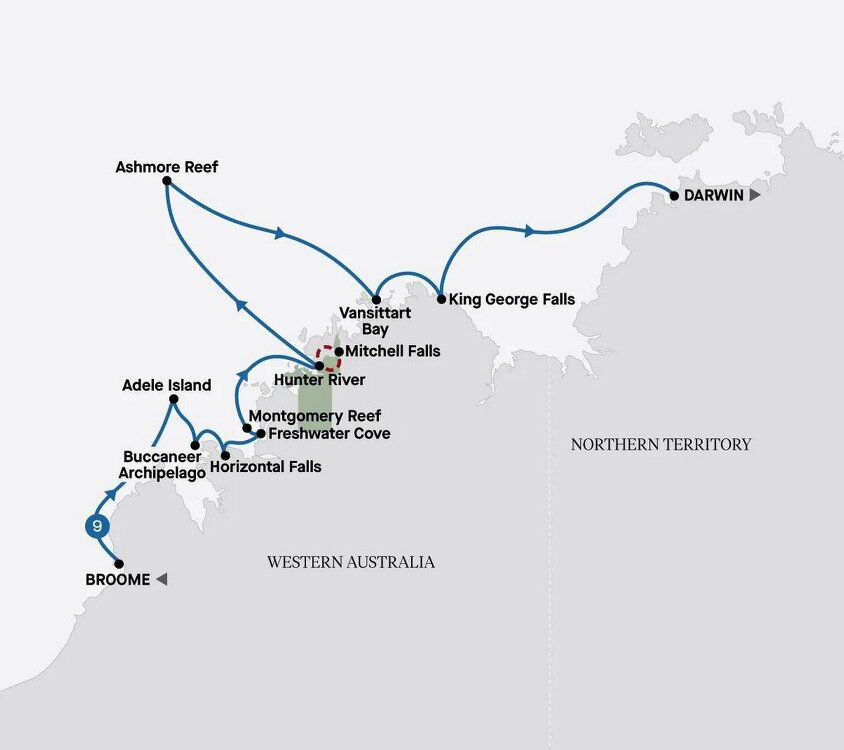 Cruise to Adele Island and join your Expedition Team member for an exploration of this remote coastal area by Zodiac. The island is surrounded by Adele Reef, teeming with an array of coral and marine life, including reef sharks and stingrays. There's further promise of turquoise waters this afternoon as your ship arrives in the Buccaneer Archipelago, home to more than 800 islands. This evening, enjoy a captain's welcome dinner. (B/L/D)