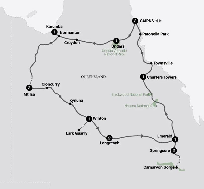 This morning, enjoy a Signature Experience. Visit Minerva Hills National Park, keeping an eye out for eastern grey kangaroos, wallaroos and wallabies. Afterwards, continue on to Emerald. Established in 1879 as a base for building the western railway, the town is a gateway to the Sapphire Gemfields. Stay: Mayfair Emerald (B/L/D)