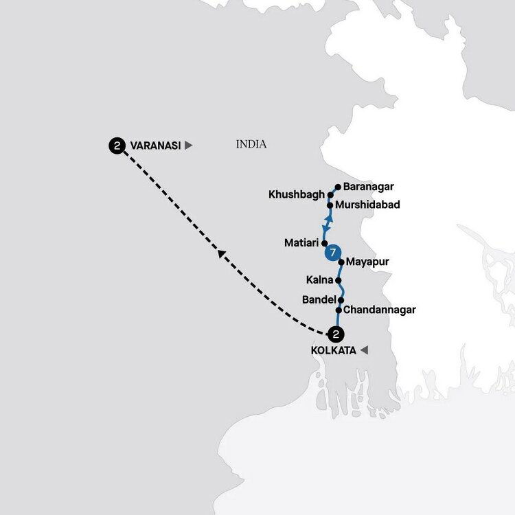 Set out on a morning walking tour featuring some of Kolkata's best-preserved colonial buildings including the Writer's Building, General Post Office, High Court and Raj Bhawan (Governer's House). Take a tour of St John's Church, which was built in 1756, and features the tombs of several British generals who died in that year's Siege of Kolkata. After lunch on board, your ship will begin its journey upstream along the Hooghly River on the Lower Ganges.