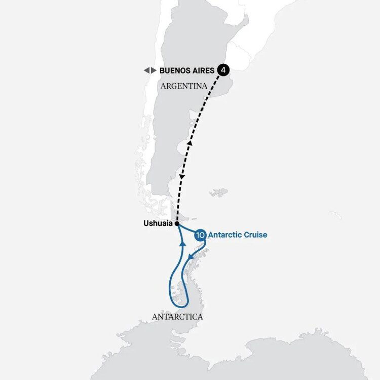 Board your included APT private charter flight to Ushuaia and join a guided tour of Tierra del Fuego. After a light lunch, board your luxury expedition ship, Seabourn Venture, to begin your 10-night Antarctic Peninsula cruise. Be greeted by your Expedition Leader and a team of expert naturalist guides. Settle in before enjoying the Captain's welcome dinner. Afterwards, head to the deck to take in the stunning scenery of the Beagle Channel. Stay 10 Nights: Seabourn Venture (B/L/D)