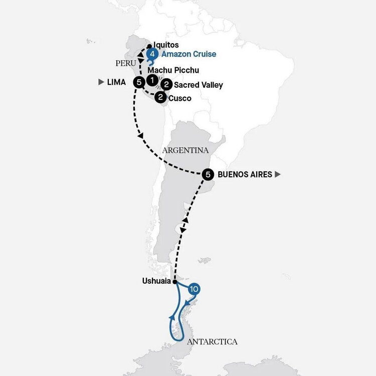 Board your included exclusive APT flight to Ushuaia and join a guided tour of Tierra del Fuego. After a light lunch, board your ultra-luxury expedition ship, Seabourn Venture, to begin your 10-night Antarctic Peninsula cruise. Be greeted by your Expedition Leader and a team of expert naturalist guides. Settle in before enjoying a captain's welcome dinner. Afterwards, head to the deck to take in the stunning scenery of the Beagle Channel. Stay Ten Nights: Seabourn Venture (B/L/D)