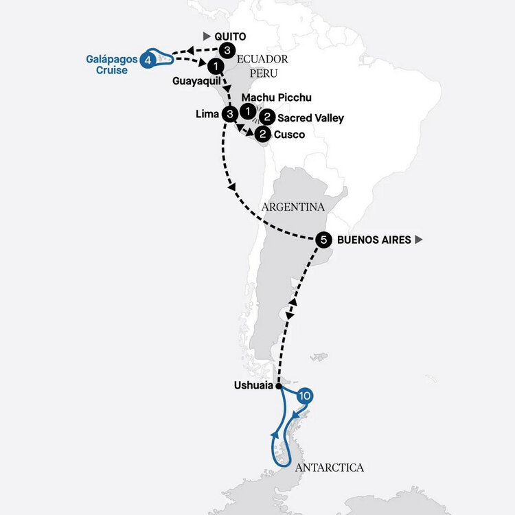 Following breakfast, your Antarctic and South American adventure comes to an end with a transfer to the airport for your onward flight.