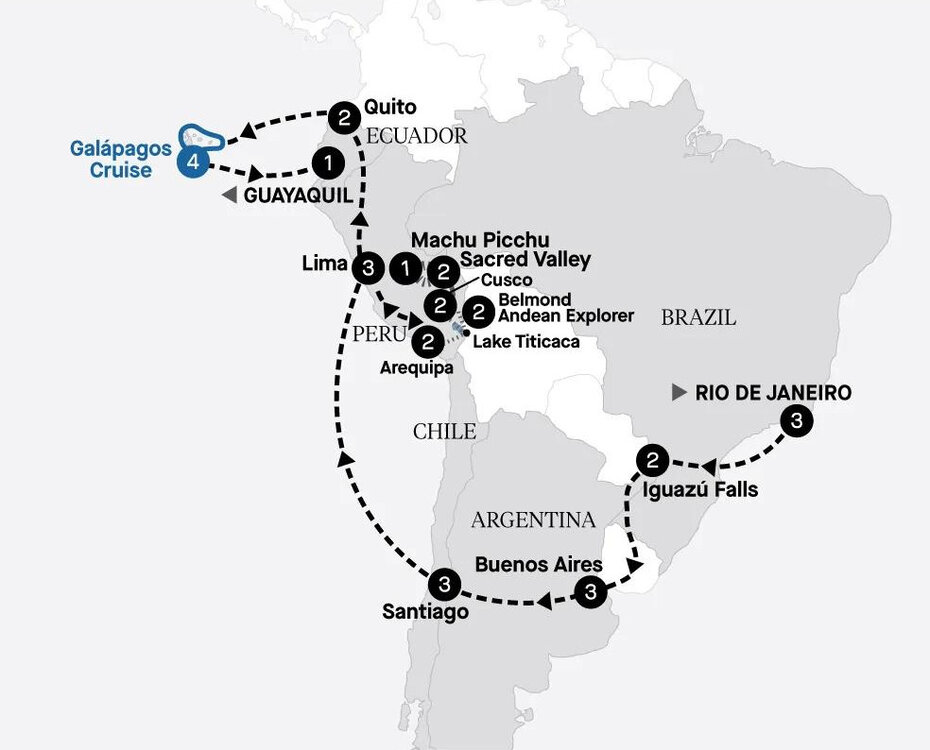 Welcome to Rio de Janeiro, Brazil's most visited city, set between lush, forested mountains and sandy shores. On arrival, we'll meet and transfer you to your elegant art deco hotel, primely located opposite the iconic Copacabana Beach. This evening, meet your Tour Director and fellow travellers during a welcome dinner at your hotel.