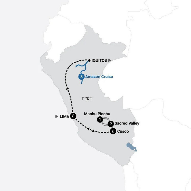 In the morning, disembark Delfin III and visit the Tropical Amazon Aquarium en route to Iquitos. This thoughtfully curated aquarium showcases the Amazon's rich aquatic biodiversity, featuring over 60 species of tropical fish, offering a fascinating opportunity to learn more about the natural wealth of the Amazon River. Your South American adventure concludes at Iquitos Airport.