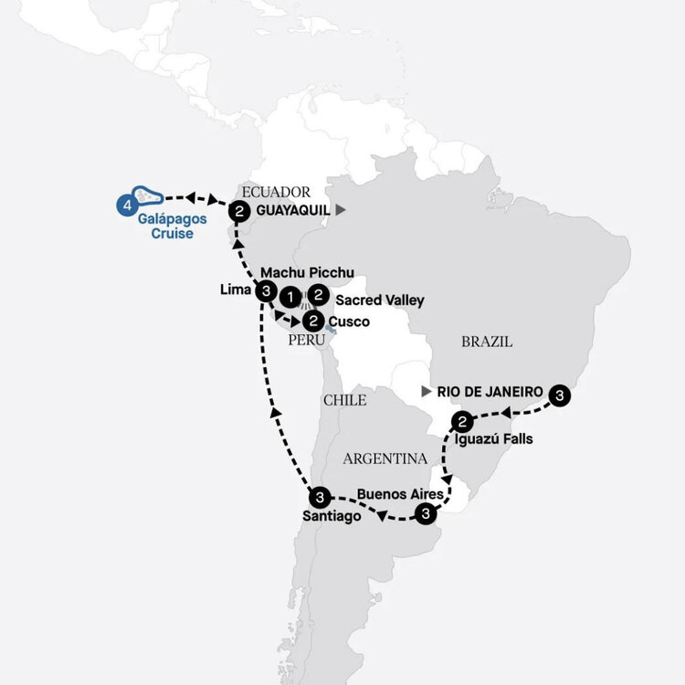 After breakfast, your South American adventure concludes with a transfer to the airport for your onward flight.