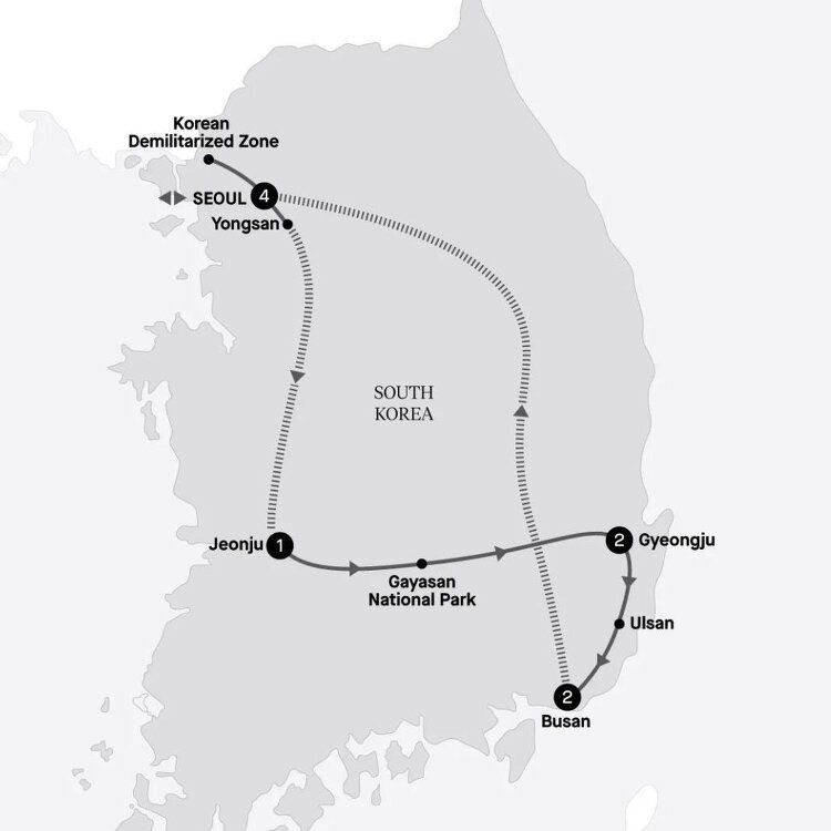 Discover two of South Korea's most valued World Heritage sites this morning. Start with a visit to Seokguram Grotto, a government-classified National Treasure of South Korea which overlooks the East Sea and contains some of the most important Buddhist sculptures in the world. Next you'll explore Bulguksa Temple, a Buddhist temple completed in AD774 by the Silla royal court. Following the morning's sightseeing, sit down for a Korean bulgogi lunch at a local restaurant.