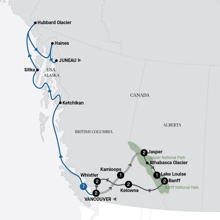 Once you've landed in Vancouver, you'll be transferred to your hotel before tonight's welcome dinner alongside your fellow travellers.
