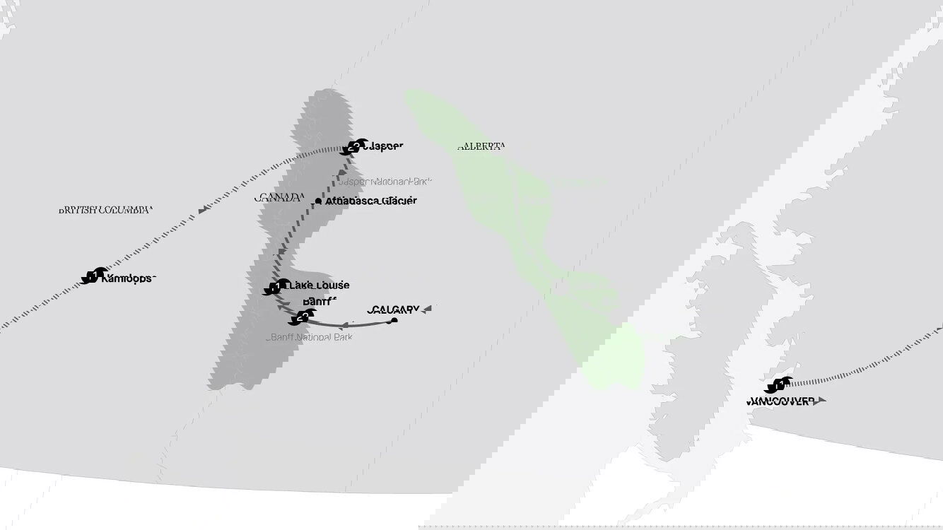Your incredible rail journey through the Rockies starts this morning when you board the world-famous Rocky Mountaineer. Relax and soak up the views from the bi-level glass-dome carriage in GoldLeaf Service en route to Kamloops. Stay: Kamloops, hotel as assigned by Rocky Mountaineer (three-star accommodation) (B/L)