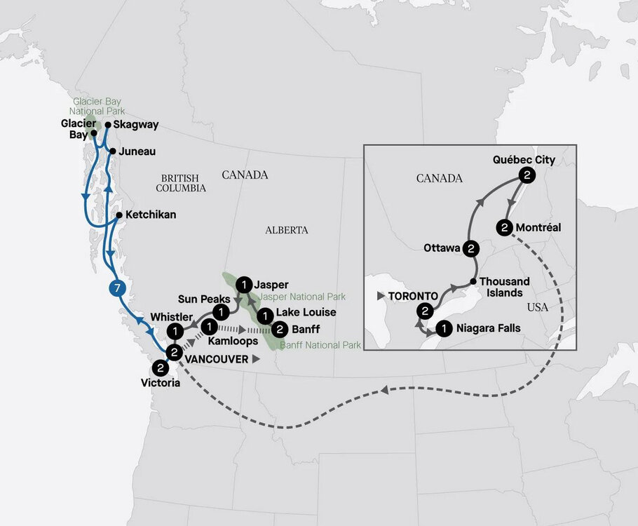 Today begins with an incredible Signature Experience. Then, embark on a sightseeing tour of beautiful Vancouver, where you'll be introduced to the city's must-see attractions, including the cobblestone streets of historic Gastown, vibrant Chinatown, and vast Stanley Park. You will also stop by Granville Island, the bustling heart of Vancouver's cultural scene. The rest of the afternoon and evening is yours to explore at leisure.
