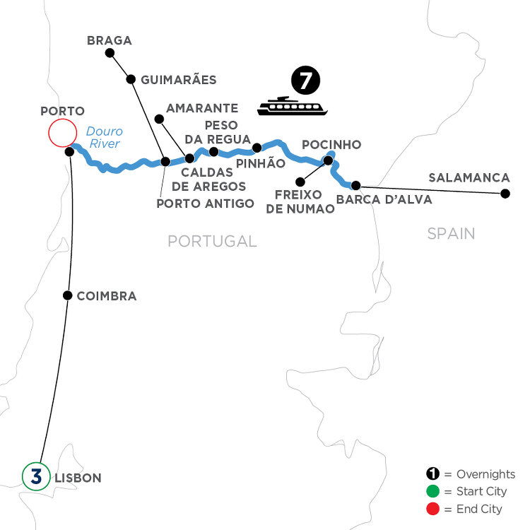 *On March, second half of September, October & November the Porto sightseeing excursion, the bike tour and the Porto wine tasting will be offered on day 2. The full-day excursion to Braga and Guimarães originally planned for day 2 will be offered on this day. As an alternative, enjoy a sailing morning and free time in the afternoon in Porto. (B/L/D)Your vacation ends with breakfast this morning. (B)