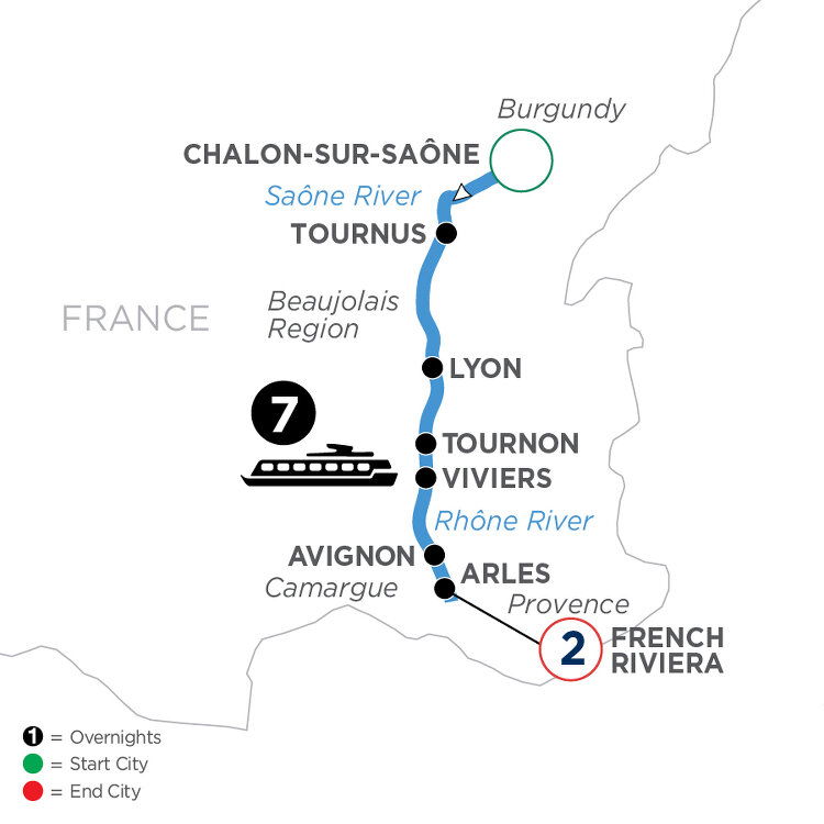 Please Note: The end city and accommodation in the French Riviera is yet to be confirmed and subject to change.