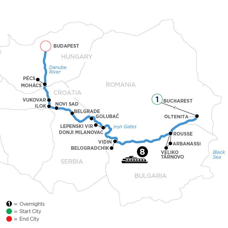 Before lunch on board, you'll sail through the spectacular and narrow Iron Gates Gorge—forming a natural border between Serbia and Romania.OVERNIGHT CRUISE TO BELGRADE (B/L/D)