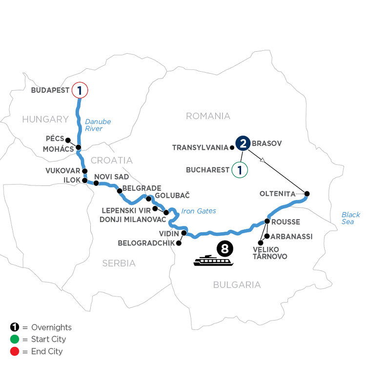 Before lunch on board, you'll sail through the spectacular and narrow Iron Gates Gorge—forming a natural border between Serbia and Romania.OVERNIGHT CRUISE TO BELGRADE (B/L/D)