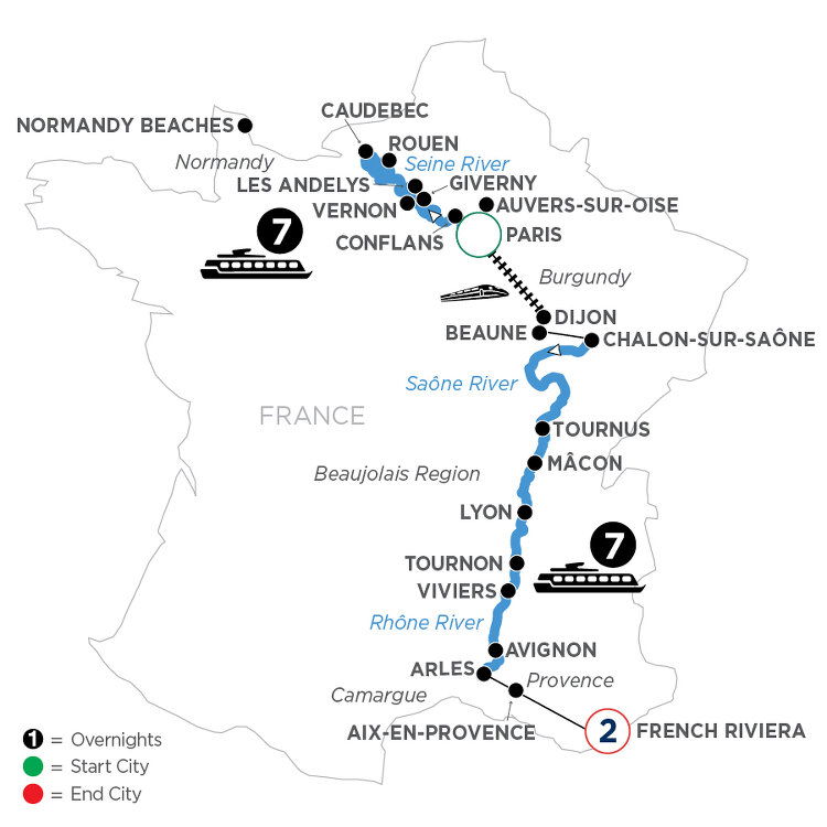 Welcome to France. Your Suite Ship® is Ready for Boarding. Flights into Paris must arrive by 2:30pm. Guests must be on board ship by 5pm.
