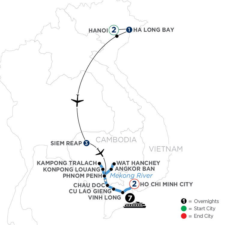 Fly to Phnom Penh and transfer to the port where your ship's crew will be waiting to welcome you onboard. Get acquainted with the ship and relax before your welcome reception this evening. Please note: Flight schedules are constantly changing which may require a scenic overland transfer to Phnom Penh.AFTERNOON/EVENING CRUISE TO WAT HANCHEY (B/L/D)