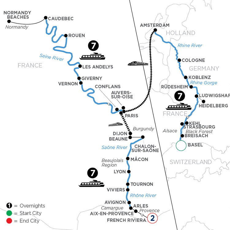 Please Note: The end city and accommodation in the French Riviera is yet to be confirmed and subject to change.