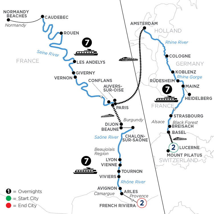 Please Note: The end city and accommodation in the French Riviera is yet to be confirmed and subject to change.