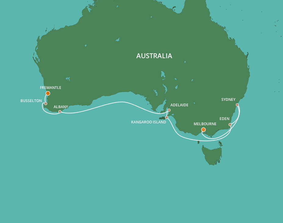 Kangaroo Island is home to dramatic coastal cliffs, lush eucalyptus forests, rolling green hills and gorgeous beaches. It is a wildlife sanctuary where you get the unique opportunity to see an amazing range of animals up-close in their local habitat. Ships will anchor offshore and tenders will be provided to the pier.