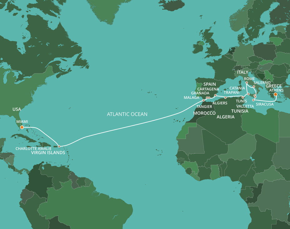 This multicultural city where the sun rules supreme is more than just a cruise port. Palm-lined causeways stretch across luminous Biscayne Bay as Miami rises in a gleam of glass towers, Art Deco curves, and tropical colour. Along Ocean Drive in South Beach, pastel facades from the 1930s glow beneath the Florida sun, while nearby Little Havana hums with domino parks, cigar shops, and the aroma of Cuban coffee. Beyond the shoreline, calm waters, yacht marinas, and breezy promenades frame a city shaped by Caribbean rhythms and sunlit coastal glamour.