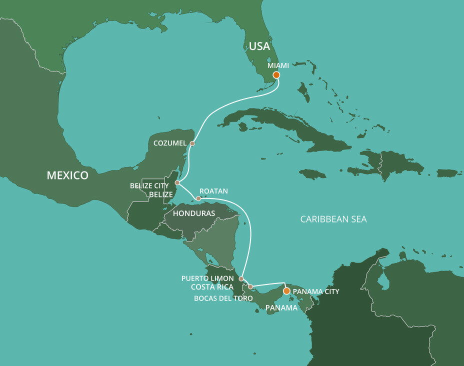 Roatan, the largest of the Bay Islands of Honduras, is noted for its pristine coral reefs, beautiful beaches, lush tropical foliage, and friendly people. A diving paradise, there is easy access to the underwater marvel of the Caribbean’s largest coral reef. Ships will dock or anchor offshore in the town of Coxen Hole.