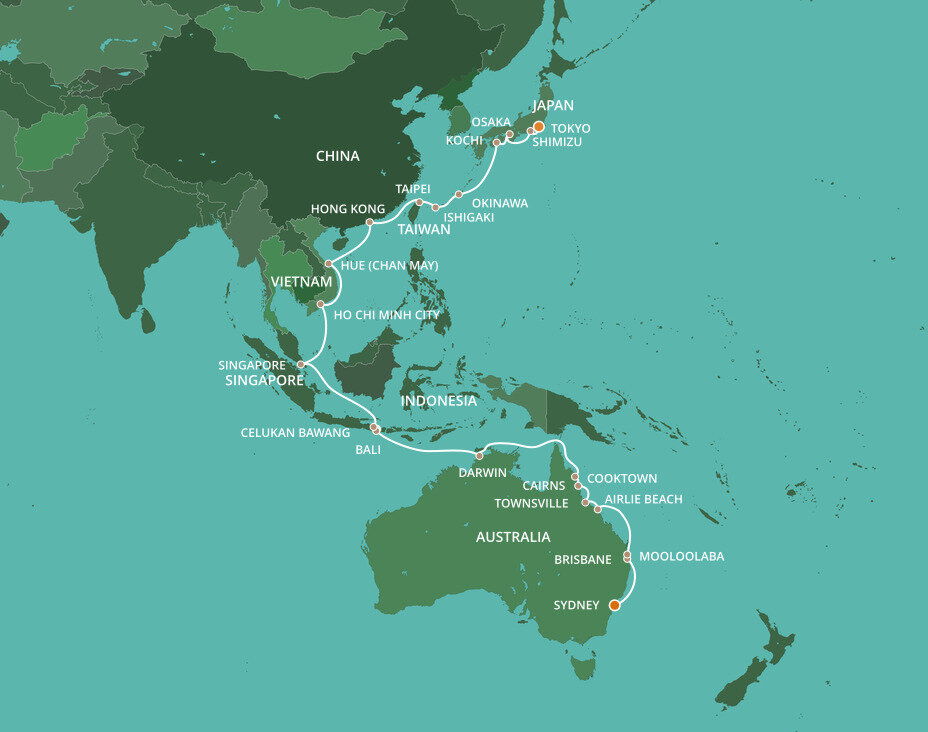 Benoa is located on the southern tip of Bali and is the key gateway for travellers exploring this Indonesian island. The port is approximately 12 kms (7.5 miles) from the bustling city of Denpasar - a journey of around 30 minutes. You'll dock directly at the terminal, allowing easy access to transport options.