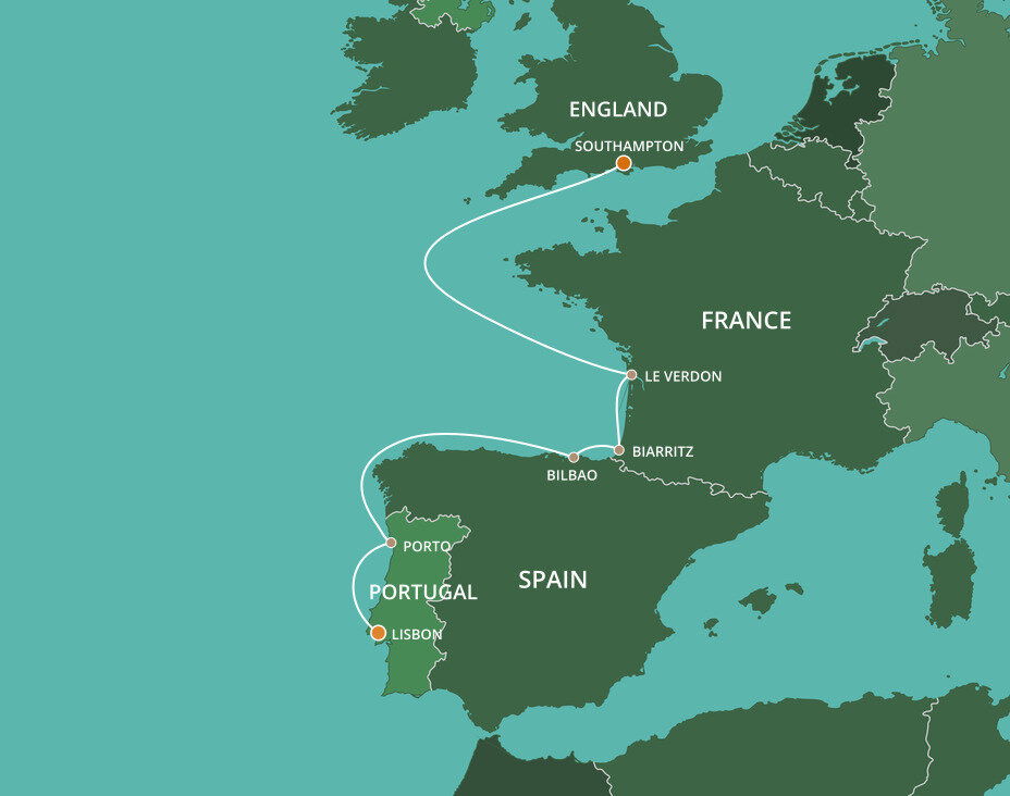 Surrounded by green mountains and lined by the beautiful blue water of the Bay of Biscay, Bilbao is magnificent mix of historic and spectacular modern architecture. Famed for its Guggenheim Museum, clad in glimmering titanium, this enormous structure is a work of art itself. Ships will dock in Getxo, which is a 20 minute drive from Bilbao.
