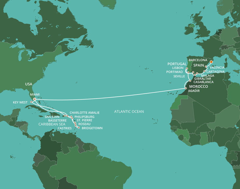 The southernmost point of the United States, Key West is known for its glorious sunshine, wild beaches, historical charm and carefree attitude. It boasts year-round tropical weather, and some of the clearest snorkelling and most preserved coral reef structures in the world. Ships will dock at this port.
