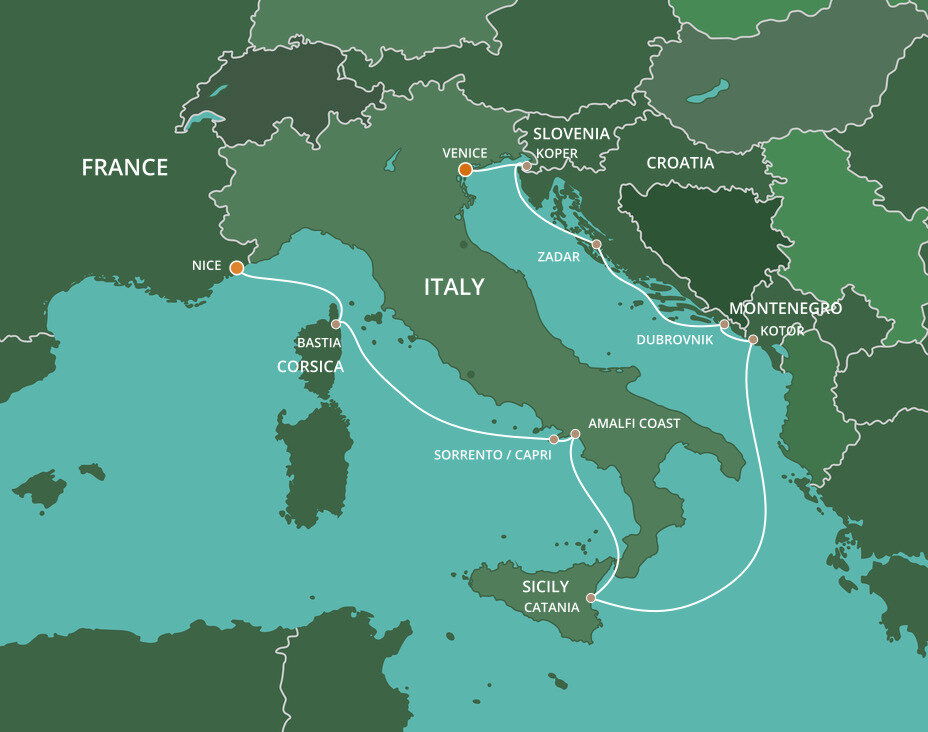 Backed by hills of olive groves and vineyards, the historic port of Koper boasts a colourful history dating back to Ancient Greece and Rome that springs to life in its Old Town. Koper is also your gateway to Ljubljana, the nation's capital, a graceful city of Baroque and Art Nouveau architecture and bridges. Ships will dock at the Potniški terminal.