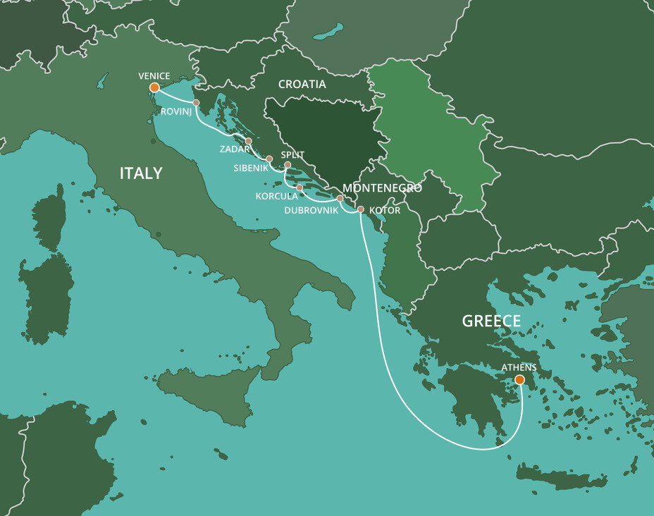 Lying on the Adriatic Sea's eastern shore, Split is known for its terracotta roofs, whitewashed buildings, palm-tree-lined promenade and azure waters. A city of romantic beauty, it was built around the historic Diocletian’s Palace. Ships will dock or anchor at this port.