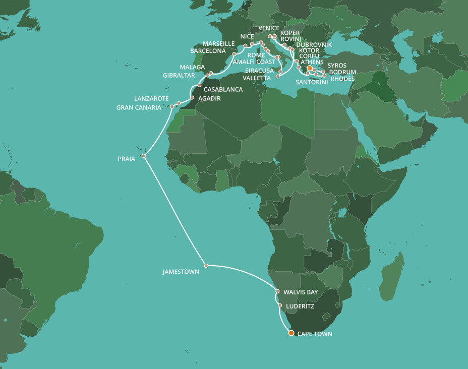 With the magnificent backdrop of Table Mountain, the Port of Cape Town is a picturesque cruise destination. Your cruise ship will be piloted through Table Bay to the dockside. From here you can explore the culture and attractions of South Africa’s most scenic city.