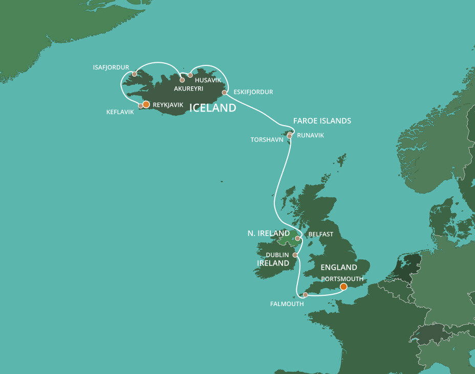 Tucked away on the northern coast of Iceland along the picturesque shores of Skjálfandi Bay is Husavik, a small fishing community that has garnered a well-deserved reputation as one of the best whale-watching destinations in the world. Ships will anchor offshore and tenders will be provided to the shore.