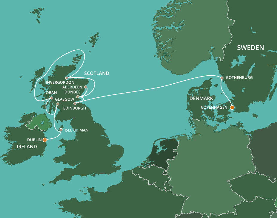 Nestled between the Highlands and the Border Hills, Edinburgh is a gracious city noted for its superb skyline, its impressive collection of architecture and its beautiful parks. Here you'll find the best of central eastern Scotland: spectacular views, rolling hills and castles. Ships will dock at the Port of Leith Cruise Liner Terminal.