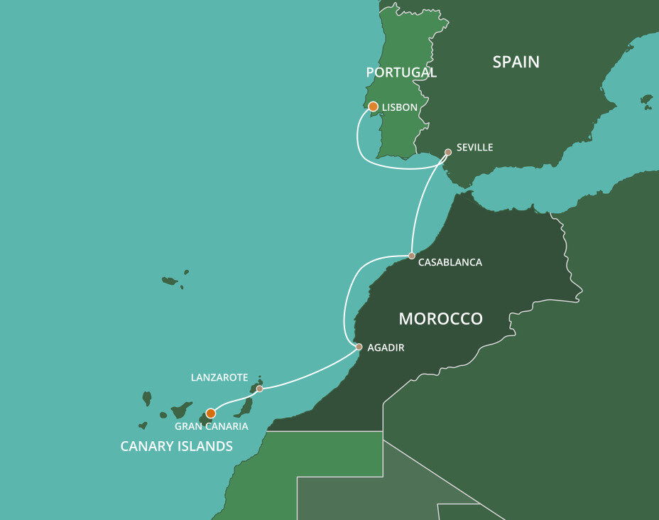 Tucked near the foot of the Atlas Mountains and surrounded by the rich plains of the Souss Valley, Agadir is a sunny cosmopolitan city with modern architecture, wide, tree-lined avenues and magnificent sandy beaches. Ships will dock at this port.
