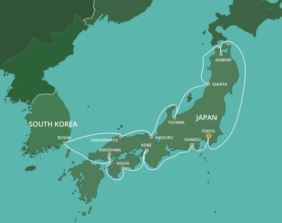Honshu's northernmost city is full of picturesque historic temples, museums, and close to incredible nature like Mt. Hakkoda. In the spring and summer, Aomori bursts to life with cherry blossom festivals and the fiery Nebuta Festival every August. Ships dock at the Shin-Chuo wharf.