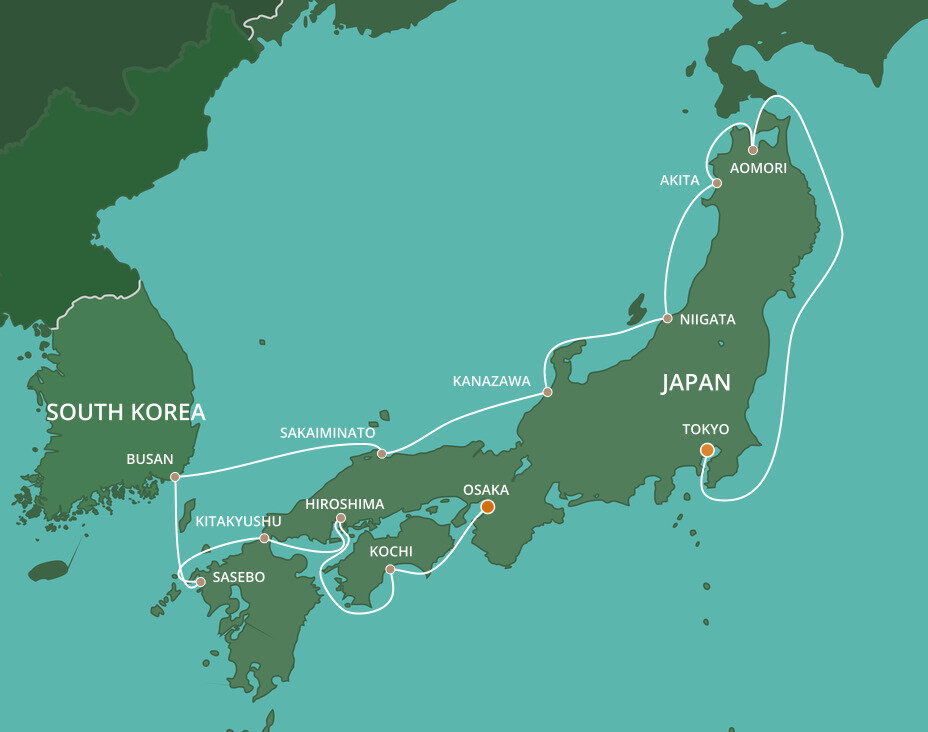 Akita is the capital of Akita Prefecture, which is renowned for Akita dogs, high-quality rice and sake, and lively folk festivals. Among the area's main attractions are its natural beauty of mountains and the sea, hot springs and the town of Kakunodate, which preserves one of Japan's most interesting samurai districts. Ships will dock at the Akita Port Cruise Terminal.