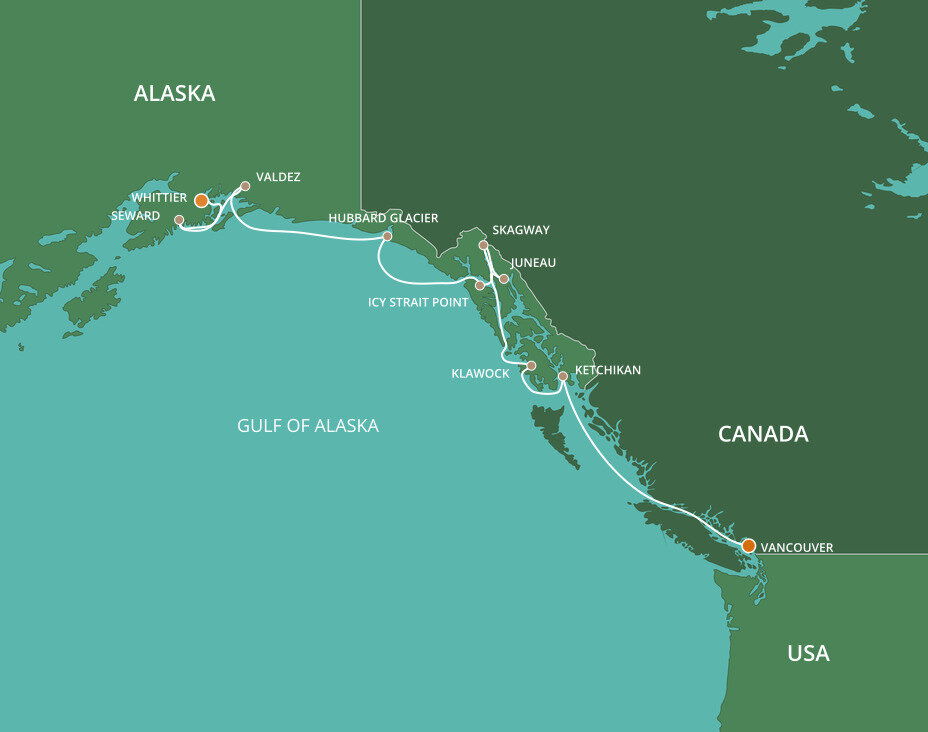 Venture 'where the north wind doesn’t blow' and discover Icy Strait Point. This uniquely Alaskan port is one of the few places in the world where wildlife outnumbers the human population. Pine trees as tall as skyscrapers, humpback whales, eagles, wild salmon, black bears and more form the harmonious tapestry of life in this Alaskan hinterland. Ships will dock at this port.