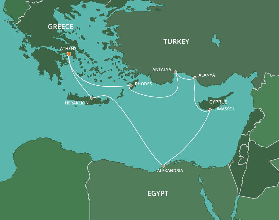 The vibrant city of Limassol is located on Akrotiri Bay in the shadow of the Troodos mountains. Its the jumping off point to explore the ancient riches of Cyprus. See ruins, majestic mountains and scenery, stunning beaches, and vast groves of lemons, oranges and olives. Ships will dock at the cruise terminal.