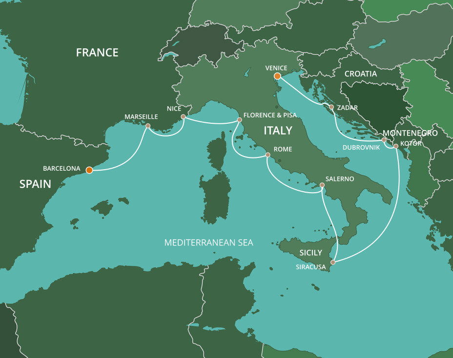 The lively seaport of Salerno is a thriving modern metropolis with ancient origins. Its elegant lungomare, a shoreside promenade, offers far-reaching views of the sea and the mountains beyond. The city boasts an ideal location with both the ruins of Roman cities and the stunning Amalfi Coast in easy reach. Ships will dock at this port.