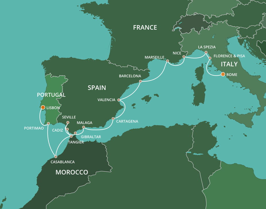 Málaga is the lively capital of the Costa del Sol, famed for its beaches and mild climate. It is a city of narrow streets, whitewashed houses, churches and sunny plazas. Málaga also serves as a popular starting point for excursions to splendid Granada and the famed Alhambra. Ships will dock at the Málaga cruise terminal.