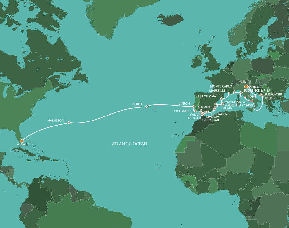 This multicultural city where the sun rules supreme is more than just a cruise port. Palm-lined causeways stretch across luminous Biscayne Bay as Miami rises in a gleam of glass towers, Art Deco curves, and tropical colour. Along Ocean Drive in South Beach, pastel facades from the 1930s glow beneath the Florida sun, while nearby Little Havana hums with domino parks, cigar shops, and the aroma of Cuban coffee. Beyond the shoreline, calm waters, yacht marinas, and breezy promenades frame a city shaped by Caribbean rhythms and sunlit coastal glamour.