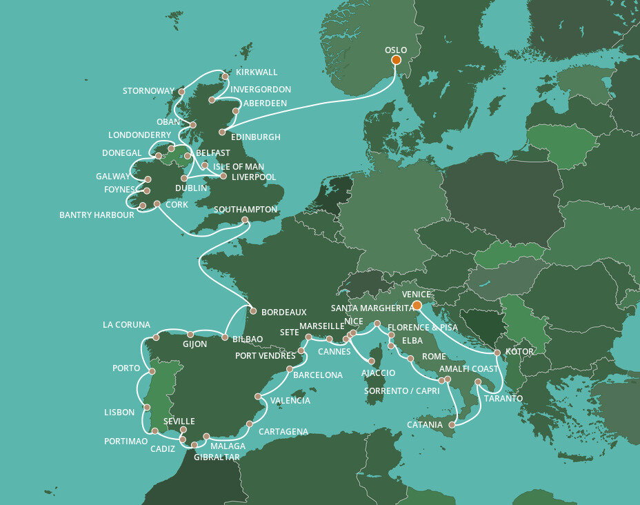 Bantry is situated at the head of ancient Bantry Bay, which is renowned for being one of the most breathtaking vistas along Ireland’s coast. The picturesque town’s narrow lanes are filled with old-fashioned shops and restaurants that offer a taste of the region’s history and culture. Ships will anchor in Bantry Harbour and tenders will be provided to the shore.