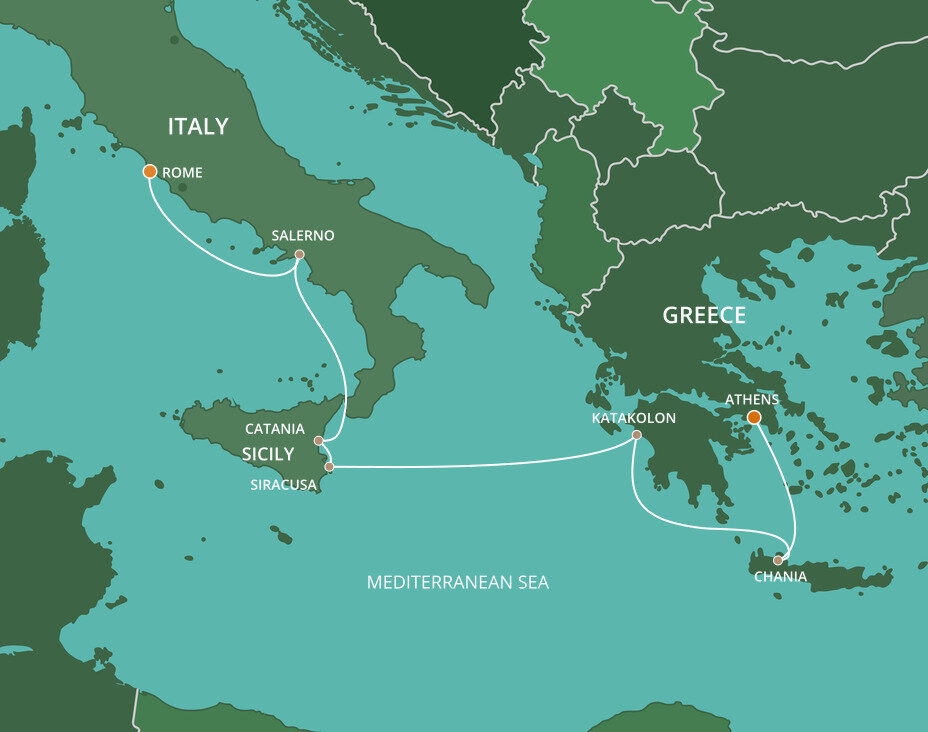 Between the Mediterranean Sea and Mount Etna lies the picturesque city of Catania. Destroyed by an earthquake in the 17th century, Catania has been beautifully restored and offers ancient churches, castles and amphitheaters, lush gardens and lovely palazzos to explore. Ships will dock at the cruise terminal.