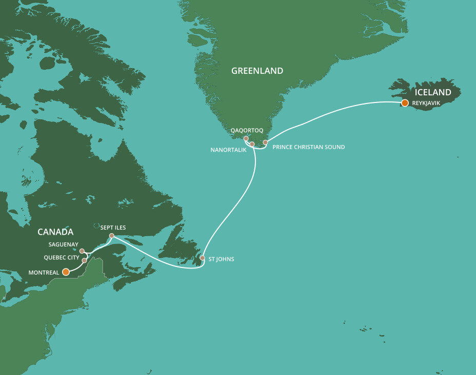 Nanortalik is located on a small island in the southern tip of Greenland. It is an adventurer's wonderland with vertical cliff walls, sheets of floating sea ice and a plethora of Arctic wildlife, including seals and Minke, humpback and fin whales. Sometimes polar bears can also be spotted on the offshore flow of ice. Ships will anchor offshore and tender guests to shore.