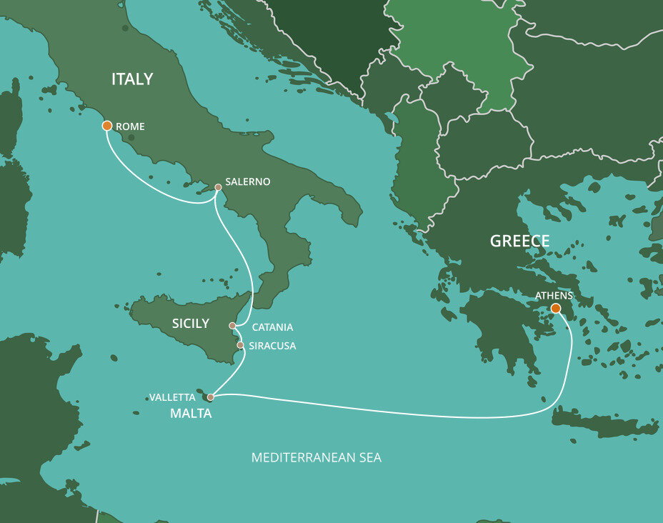 Between the Mediterranean Sea and Mount Etna lies the picturesque city of Catania. Destroyed by an earthquake in the 17th century, Catania has been beautifully restored and offers ancient churches, castles and amphitheaters, lush gardens and lovely palazzos to explore. Ships will dock at the cruise terminal.