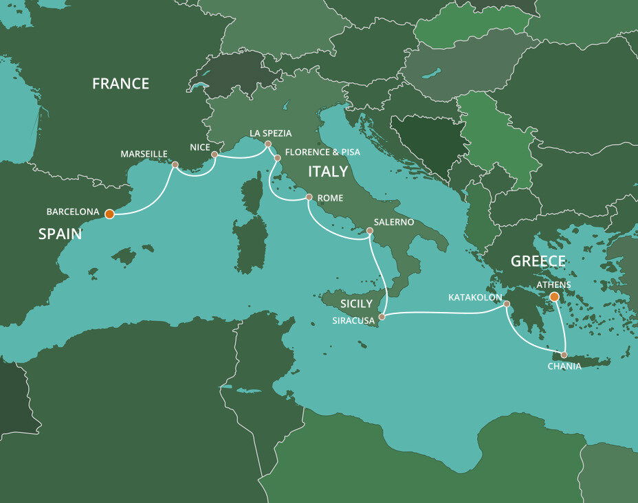 The lively seaport of Salerno is a thriving modern metropolis with ancient origins. Its elegant lungomare, a shoreside promenade, offers far-reaching views of the sea and the mountains beyond. The city boasts an ideal location with both the ruins of Roman cities and the stunning Amalfi Coast in easy reach. Ships will dock at this port.
