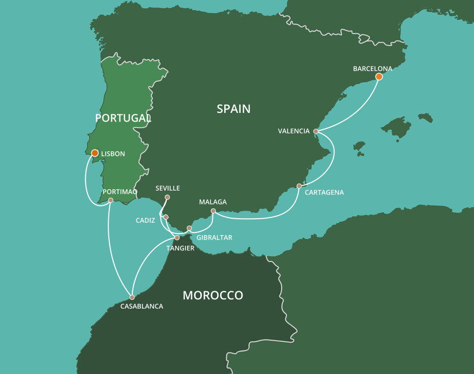 Situated just across the narrow Strait of Gibraltar from Europe, Tangier has long comprised a hybrid culture that is nearly as European as it is African. Punctuated by blooming flowers, the entire town is a beautiful, moulded artwork of colour, spilling down the mountain like a waterfall. Ships will dock in Port de Tanger Ville.