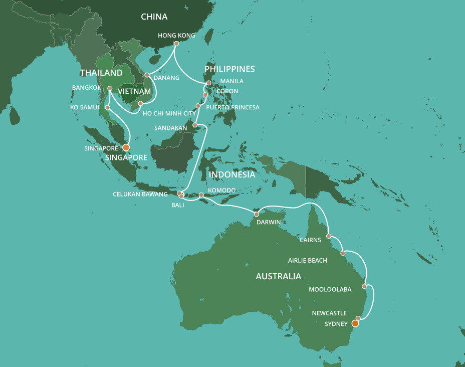 The capital city of Palawan Island in the Philippines is a fascinating landscape of caves, forests, and coastline. Often acclaimed as the cleanest and greenest city in the Philippines, it offers a wealth of attractions such as turquoise water, white-sand beaches, underground rivers, and wildlife reserves. Ships will dock at the port.