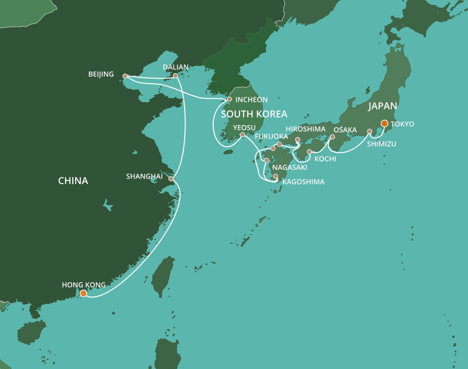 Known for its ancient temples and beautiful beaches, Fukuoka is the capital of and gateway to Kyushu Island. Boasting Japan’s heady cocktail of hot springs, gourmet food, abundant nature and spiritual history, Kyushu Island has all the advantages of the mainland, while enjoying its own identity. Ships will dock at Hakata Port.